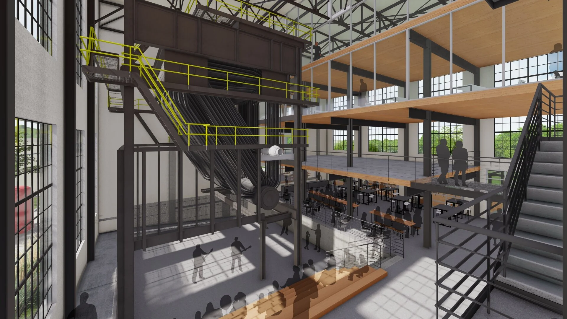 REHABILITATE EXISTING ENVELOPE, EXPOSE BOILER AND GENERATOR, STEEL AND CROSS-LAMINATED TIMBER CONSTRUCTION